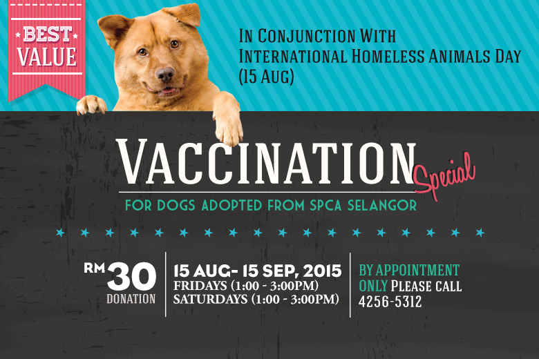 To thank you for your support, we are running a 7-in-1 vaccination promotion for an RM30 donation, specially for your adopted canine!