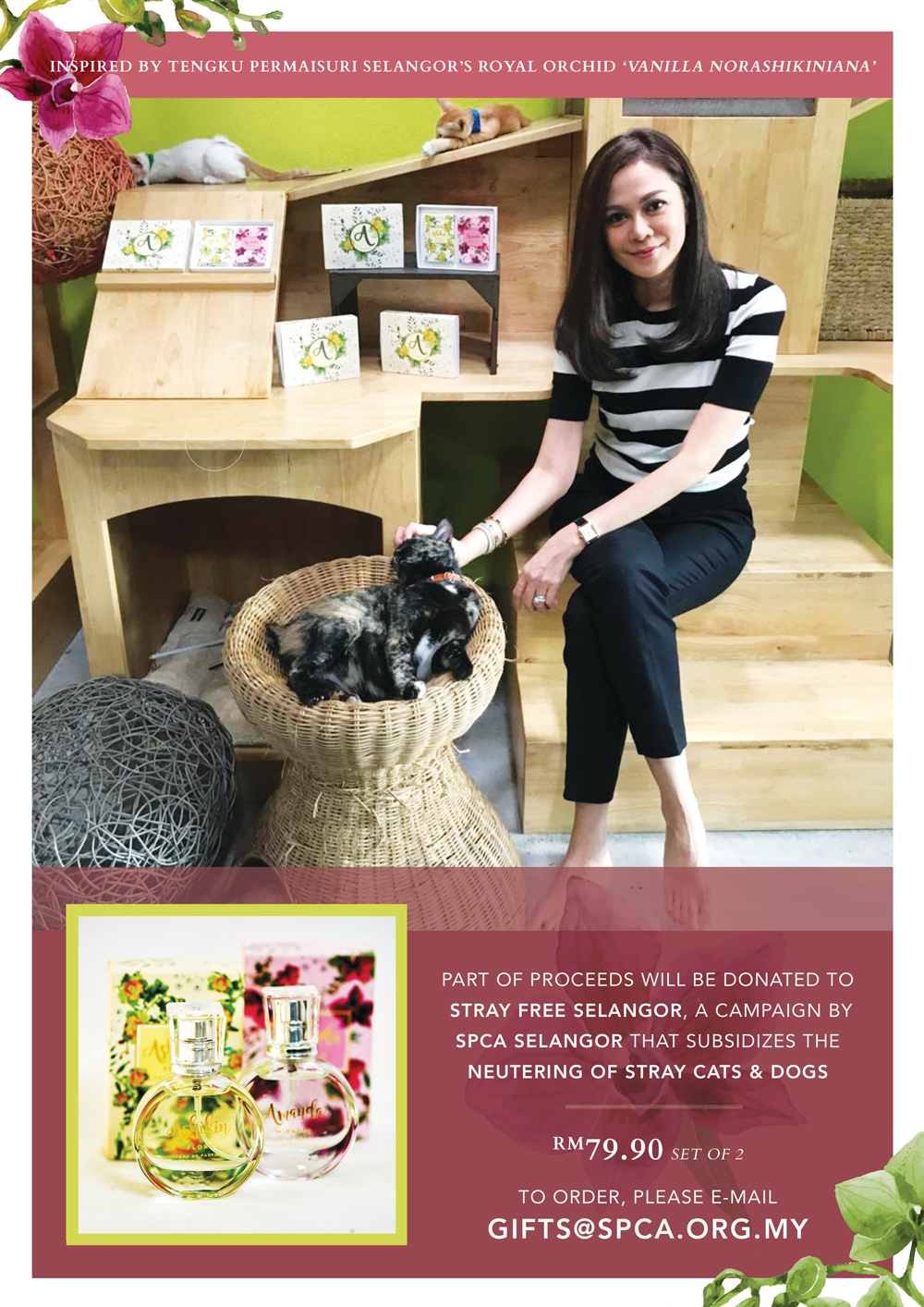 This set of two perfumes is inspired by Tengku Permaisuri Selangor's Royal Orchid, ‘Vanilla Norashikiniana’. Part of the proceeds will be donated to Stray Free Selangor, our neutering subsidy programme!