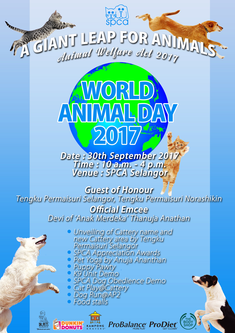 SPCA Selangor will be celebrating World Animal Day 2017 on 30th September 2017 @ SPCA Selangor!